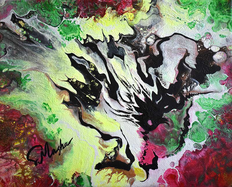 Fire Starter ignites the canvas with wild energy and instinctual force. Bold streaks of black spark through eruptions of crimson, yellow, and deep green, invoking the primal elements that awaken courage and creative drive. This piece evokes the ignition point of transformation as a visual catalyst to move from hesitation into bold action. It’s a reminder that deep within us, fire knows when to rise.