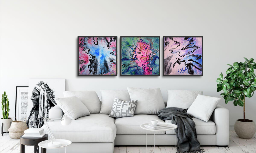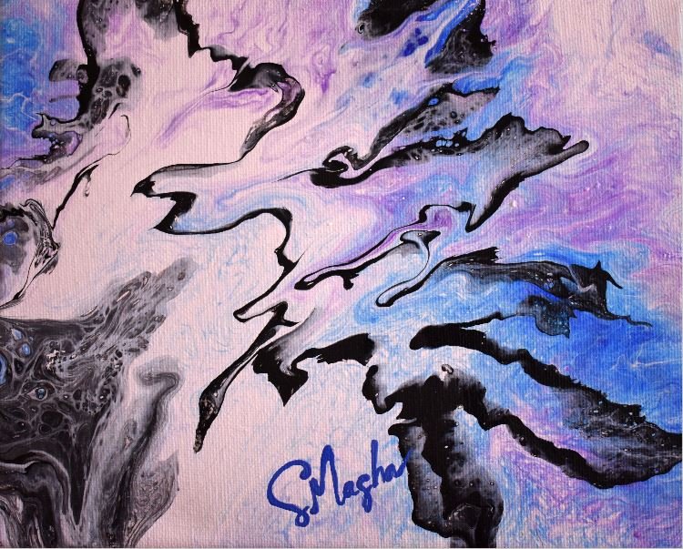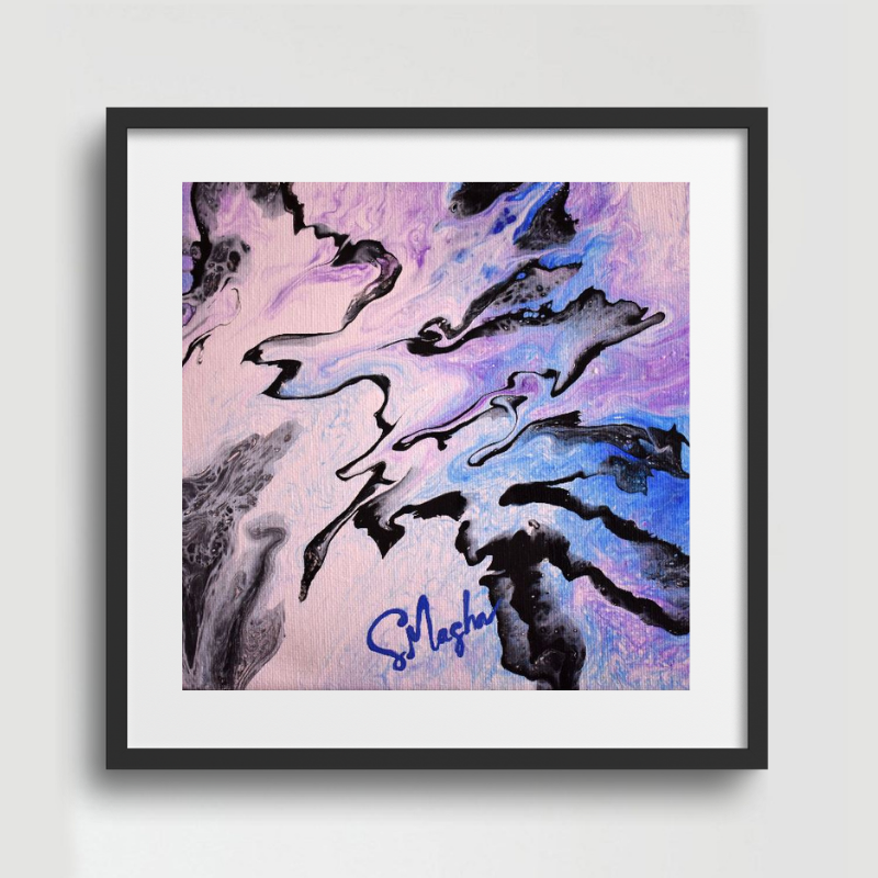 Glacier captures the sublime stillness and power of ancient ice formations. Cool tones of lilac, soft pink, and glacial blue flow through bold black veining, resembling the slow, decisive movement of glaciers carving their path through time. This abstract work mirrors the resilience and clarity that emerge when we allow transformation to happen gradually. It speaks to the calm strength found in nature’s most enduring forces and within ourselves.