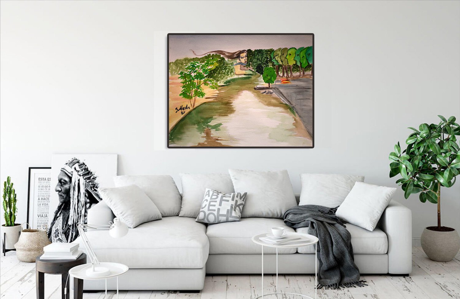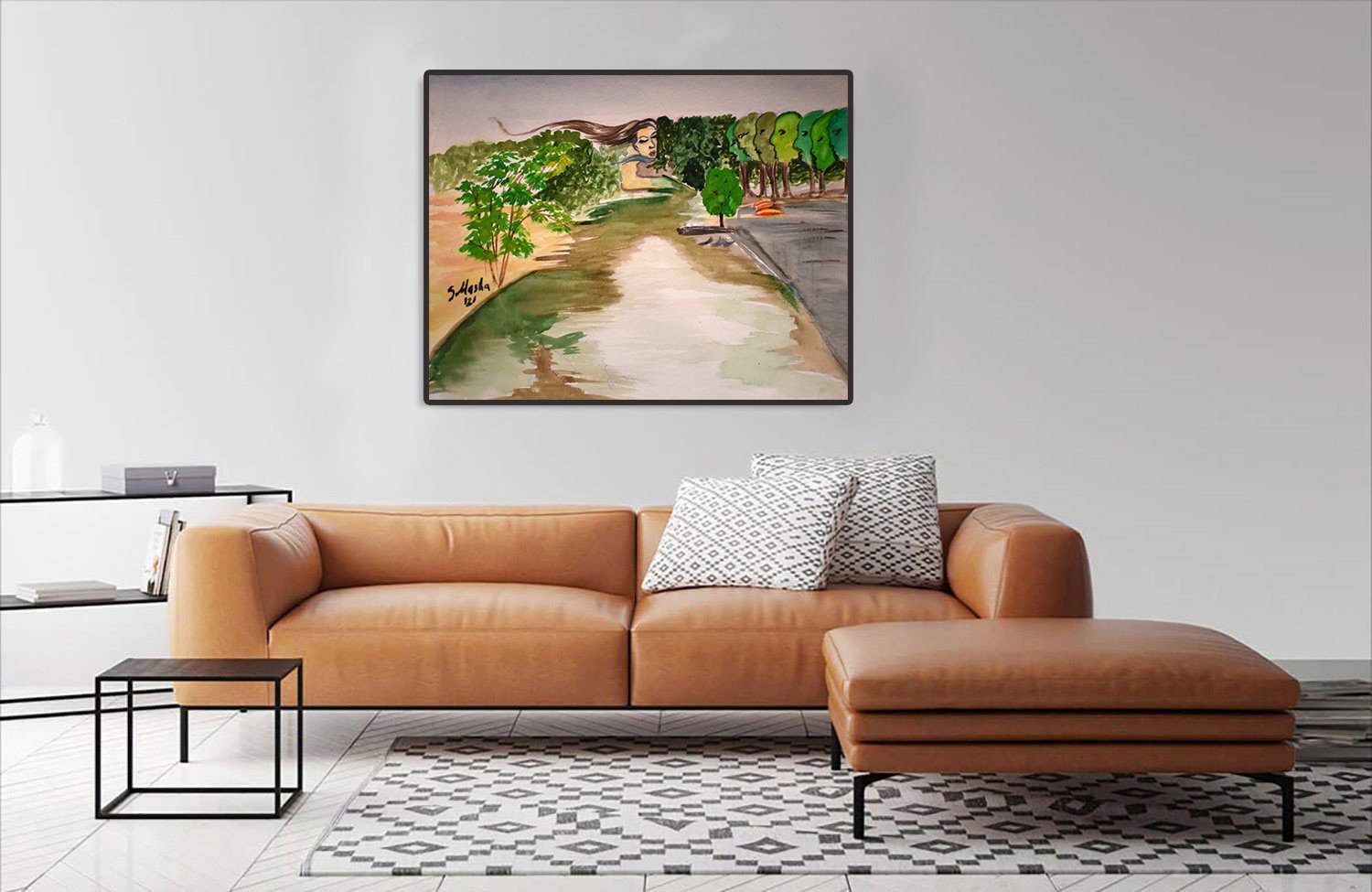 - Hand-stretched and glued over 1.25" solid wood stretcher bars