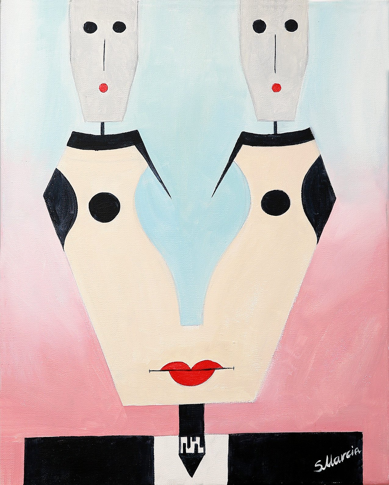 Thought Process explores the complexity of human cognition through a minimalist yet impactful lens. The composition subtly forms a face that is made up of two female figures and one male, symbolizing the interplay between masculine and feminine perspectives in how we process and express ideas. Their geometric features reflect logic, while the soft pastel gradient in the background evokes emotional nuance and internal balance. The lips, sealed by a thin black line, suggest the discipline of holding back until a thought is fully formed. This piece is a meditation on mental clarity, gendered intuition, and the quiet architecture behind every brilliant decision.