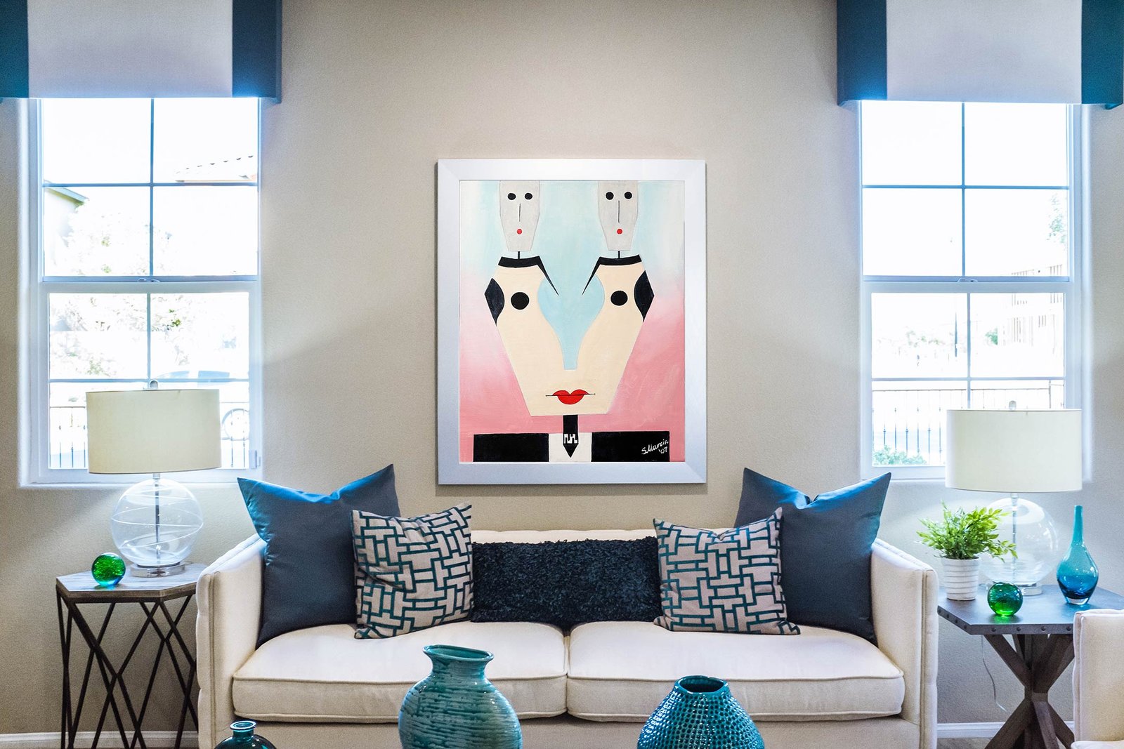 - Hand-stretched and glued over 1.25" solid wood stretcher bars