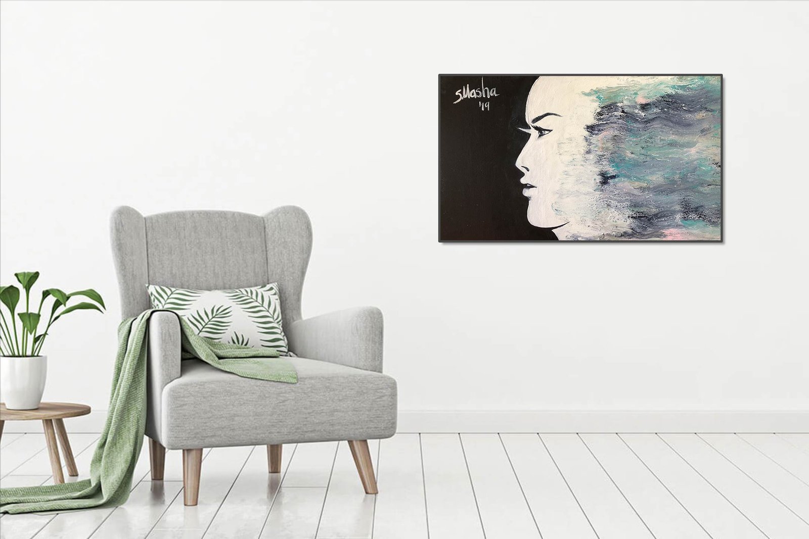 - Hand-stretched and glued over 1.25" solid wood stretcher bars
